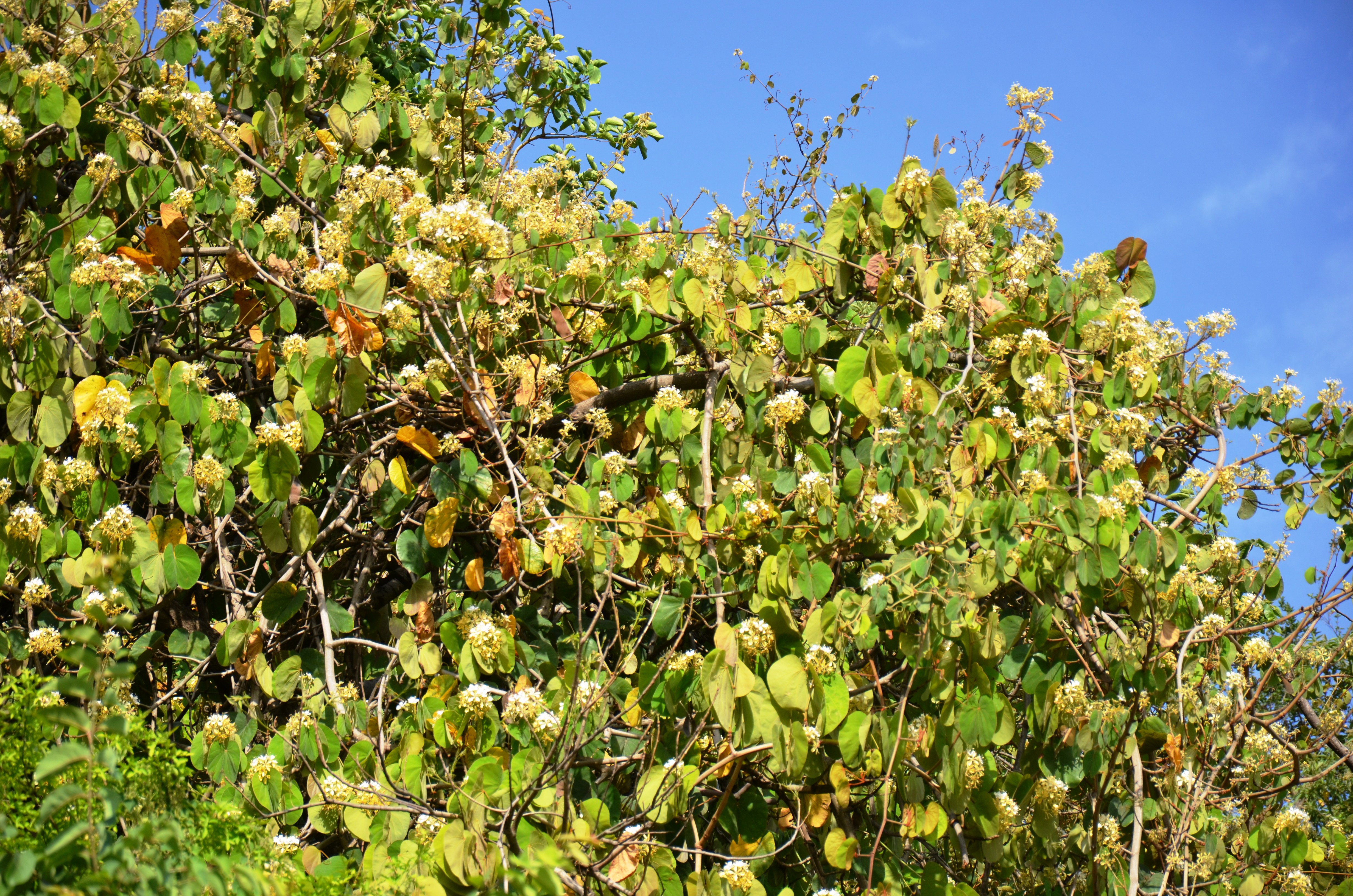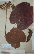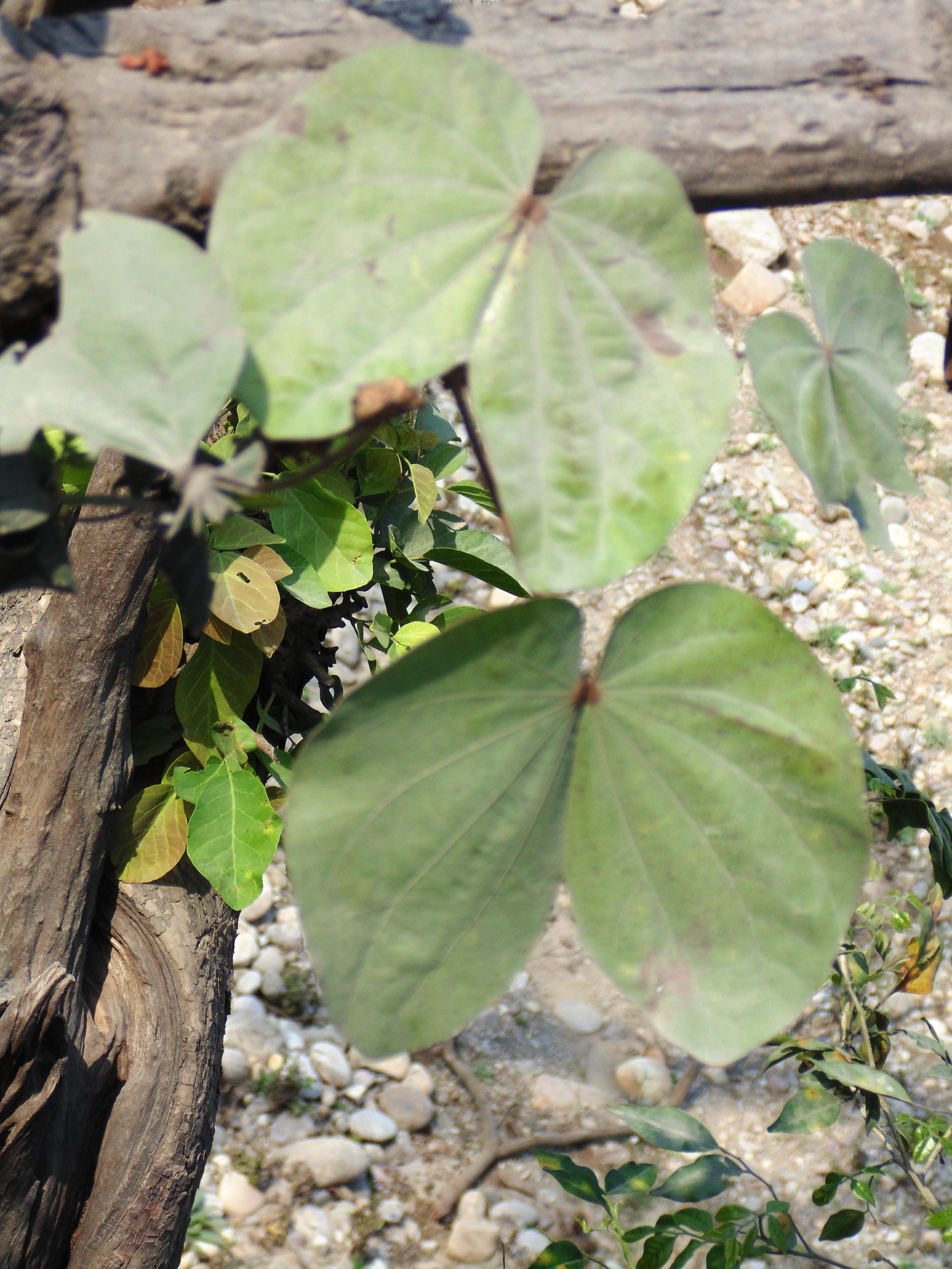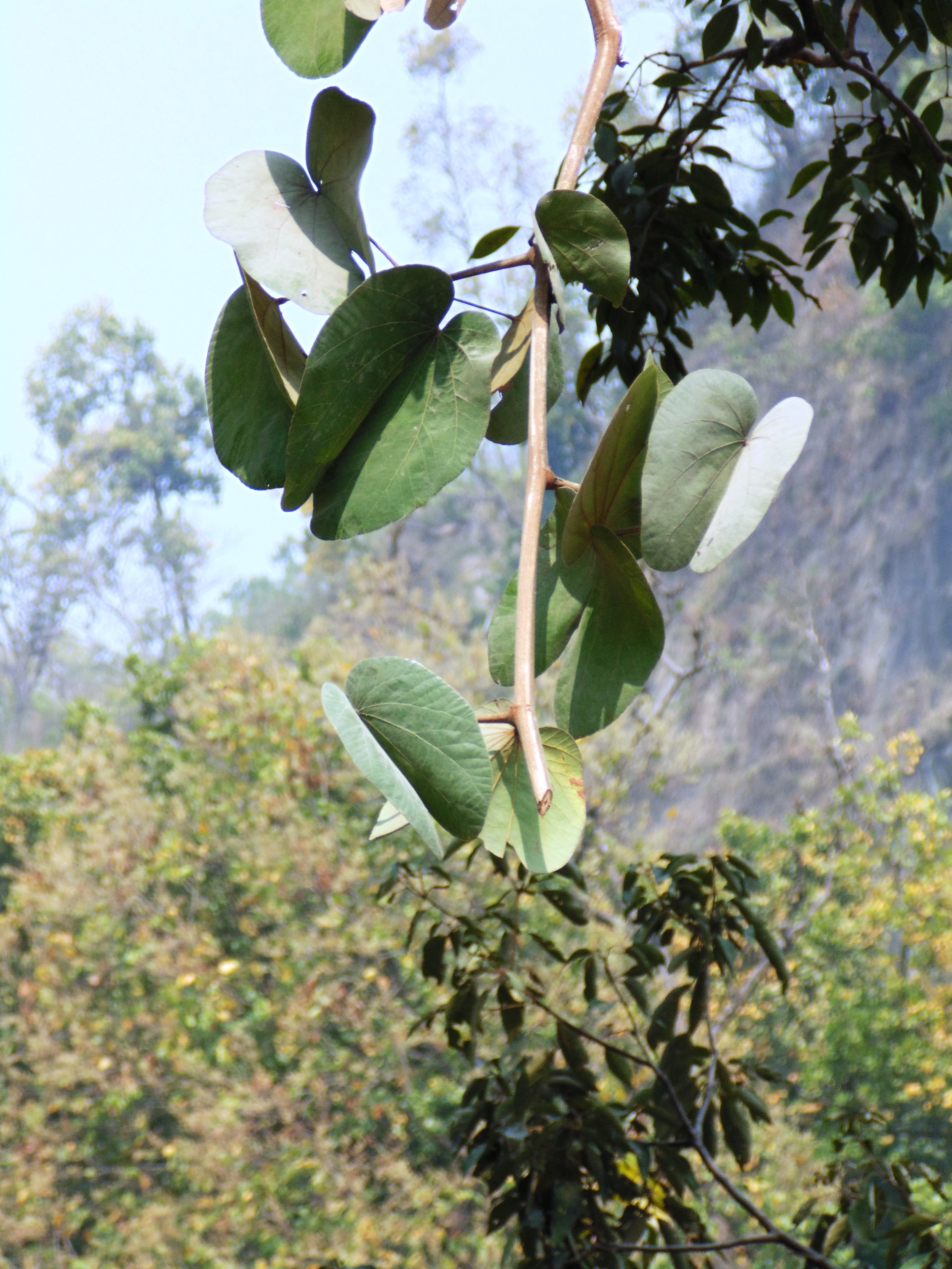 Large woody climbers, to 80 m high, often climbing from one plant to other; branches densely pubescent, ending to into circinate, rusty – tomentose tendrils. Leaves broad as long, cleft deep, glabrous when mature, densely tomentose beneath, base 11 – 15 nerved. Flowers white, in terminal corumbose racemes. Calyx cylindrical,limb splitting into 2 – lobes, rusty – tomentose. Petals ovate. Stamens 3. Pods flat, woody, rusty – velvety, seeds 8 – 12, flat, suborbicular, dark brown |