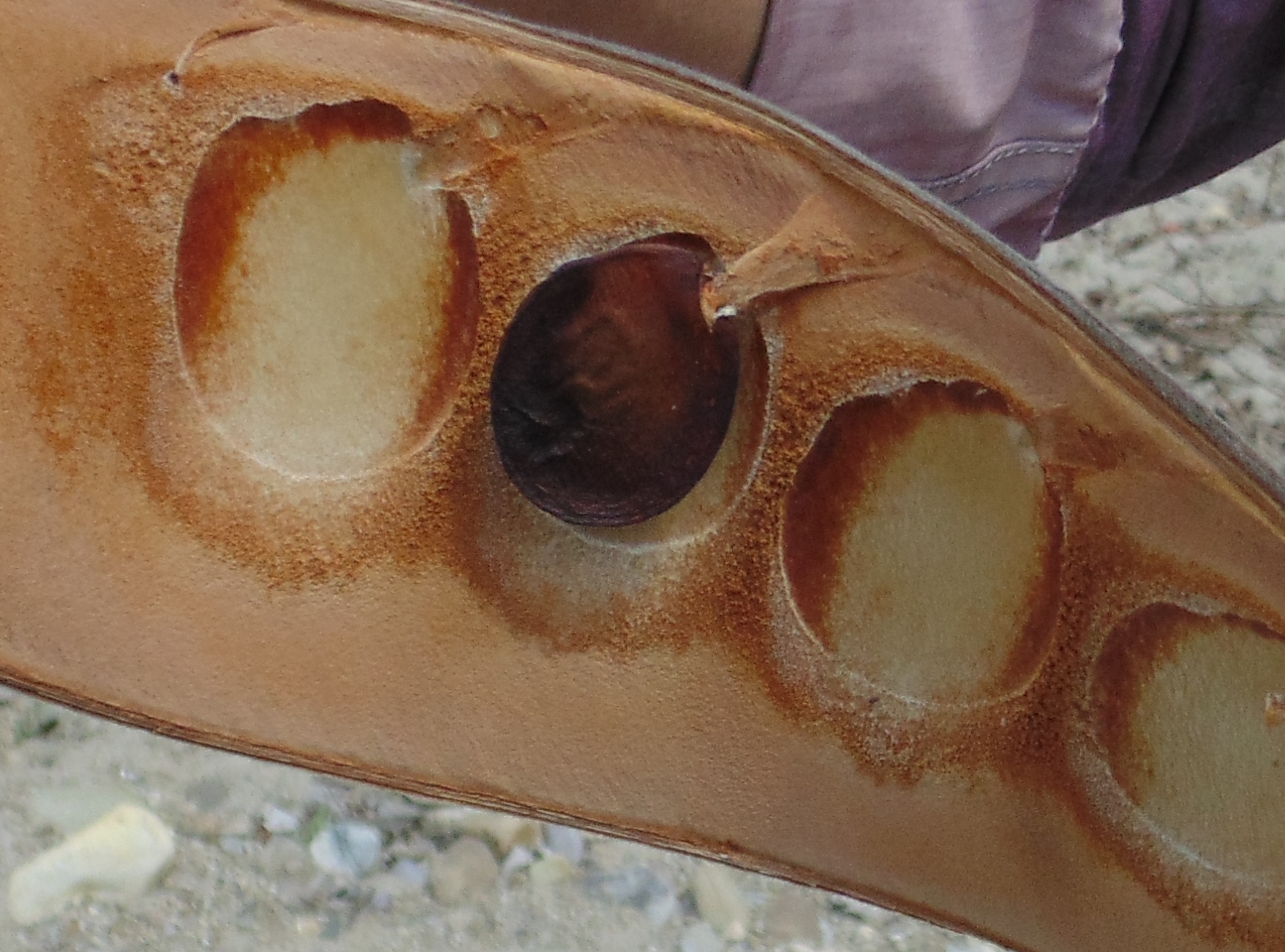 Pods flat, woody, rusty – velvety, seeds 8 – 12, flat, suborbicular, dark brown |